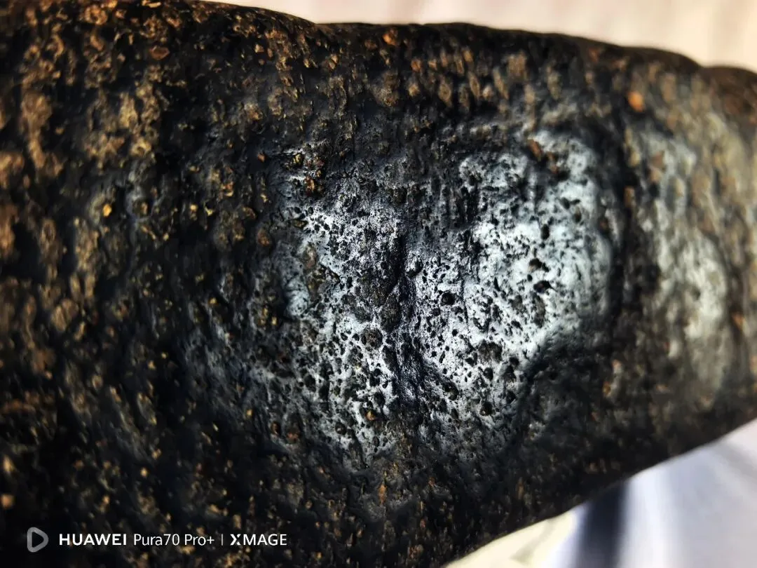 图九:照片左侧可见其在高空高速陨落过程中受到其它陨石碎块撞击的痕迹。