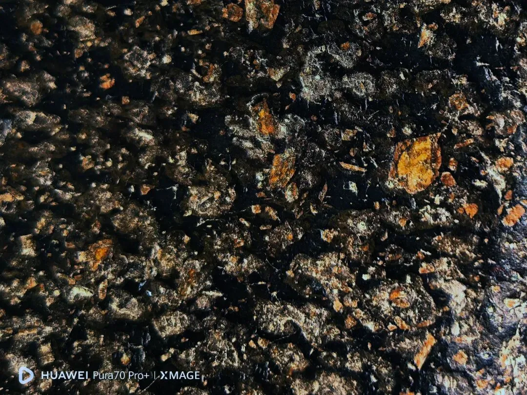 图七:局部特写可以观察到陨石表面的矿物:碎屑岩颗粒与角砾岩以及斜长石和月长石清晰可见。