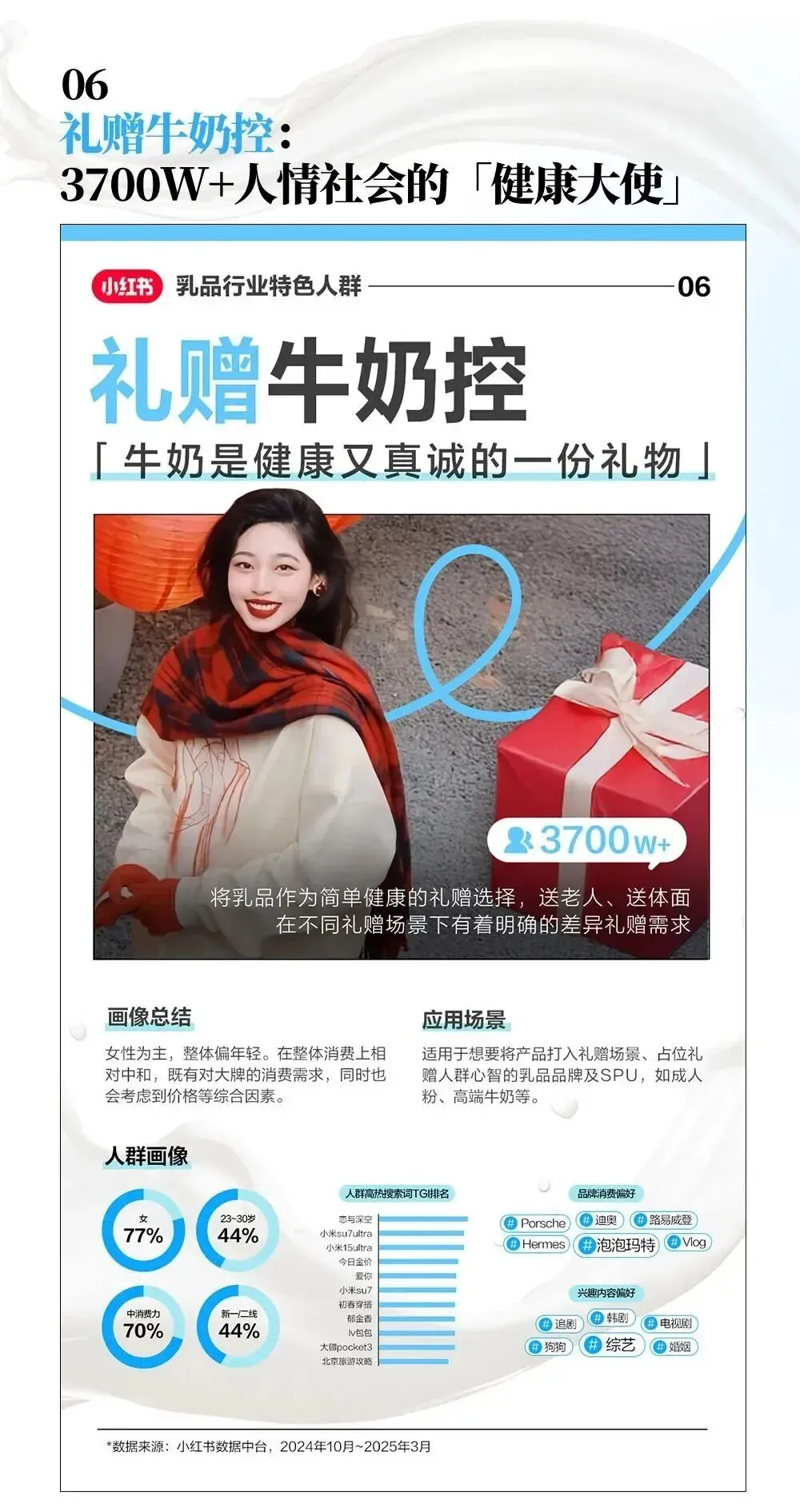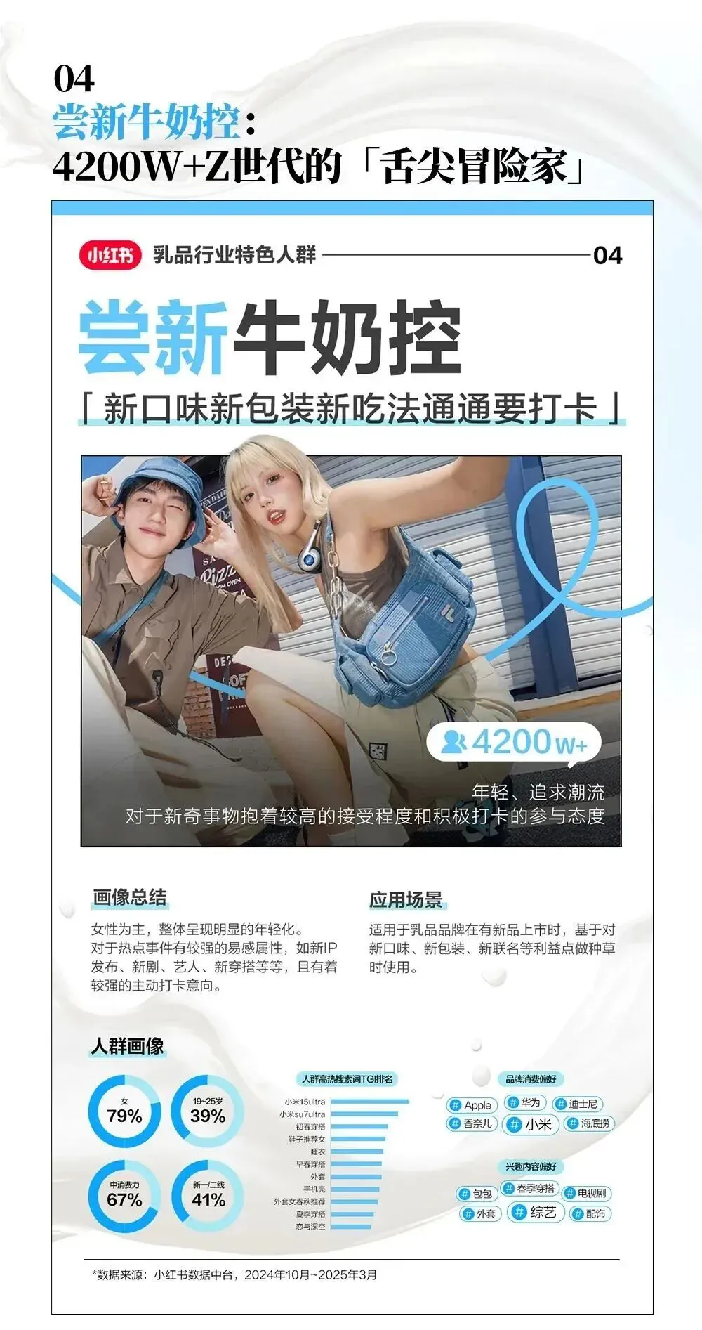 同时,数字化浪潮和平台经济深刻改变了消费者的决策路径。以小红书为代表的新内容平台,成为乳品品牌最重要的消费影响场:内容种草、分众营销与情绪价值链接,正逐步替代传统广告,成为品牌增长的新引擎。