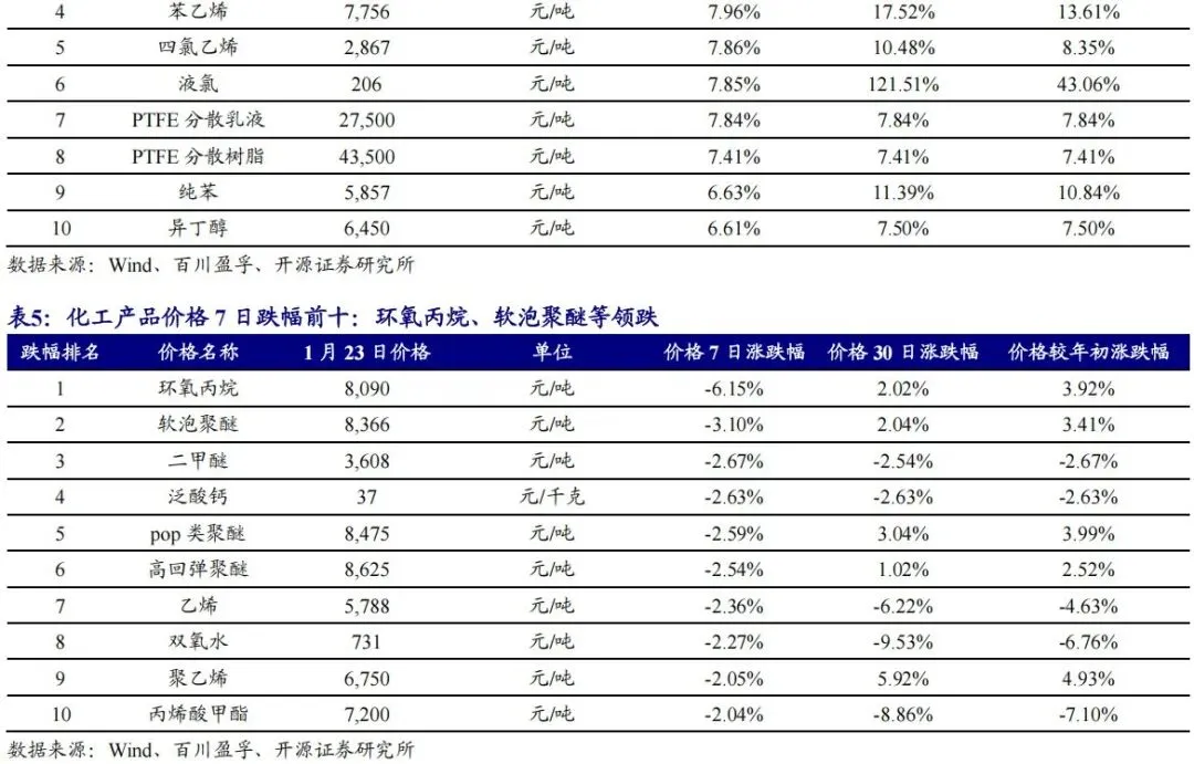 本周重点覆盖标的涨幅前五为:泰和新材、荣盛石化、三美股份、东方盛虹、云图控股。