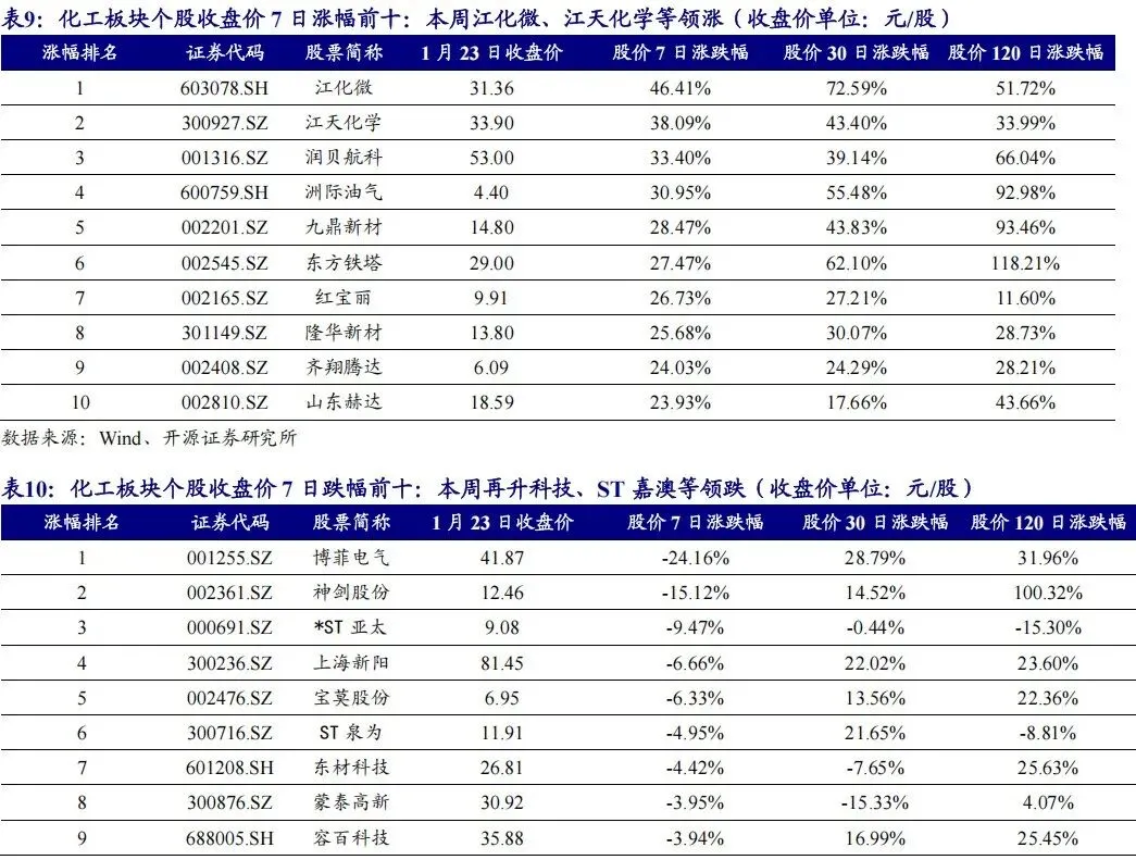 推荐标的:【化工龙头白马】万华化学、华鲁恒升、恒力石化、荣盛石化、赛轮轮胎、扬农化工、新和成、龙佰集团、盐湖股份等;【氟化工】金石资源、巨化股份、三美股份、昊华科技等;【铬盐】振华股份;【化纤行业】新凤鸣、桐昆股份、华峰化学等;【农化&磷化工】兴发集团、利民股份、云图控股、亚钾国际、和邦生物等;【硅】合盛硅业、硅宝科技;【纯碱&氯碱】博源化工、三友化工等;【其他】黑猫股份、苏博特、江苏索普、大洋生物等。【新材料】OLED:瑞联新材、奥来德、万润股份、濮阳惠成;胶膜:洁美科技、东材科技、长阳科技;其他:阿科力、松井股份、利安隆、安利股份等。受益标的:【化工龙头白马】卫星化学、东方盛虹等;【化纤行业】聚合顺、恒逸石化、华鼎股份等;【氟化工】东岳集团等;【农化&磷化工】云天化、川恒股份、苏利股份、湖北宜化等;【硅】新安股份;【氯碱行业】中泰化学、新疆天业等;【新材料】国瓷材料、圣泉集团、蓝晓科技等。【其他】卓越新能、万凯新材、华谊集团、中触媒等。风险提示: