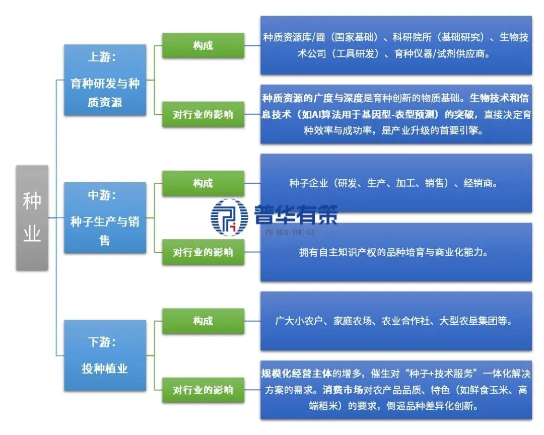 行业上游:**创新源头,决定产业高度。 主要包括种质资源与育种研发。种质资源是携带遗传信息的原始材料,是国家战略资源。育种研发则从传统杂交向分子设计育种、基因编辑等生物技术跨越。上游对行业的影响是颠覆性和方向性的。种质资源的广度与深度,直接决定了育种创新的潜力上限。以CRISPR等基因编辑技术和AI驱动的智能育种平台(如通过大数据分析预测性状)为核心的前沿科技,正极大缩短育种周期、提高精准度,是推动产业升级的核心引擎。谁掌握了上游核心技术与关键基因专利,谁就掌握了行业未来的话语权。