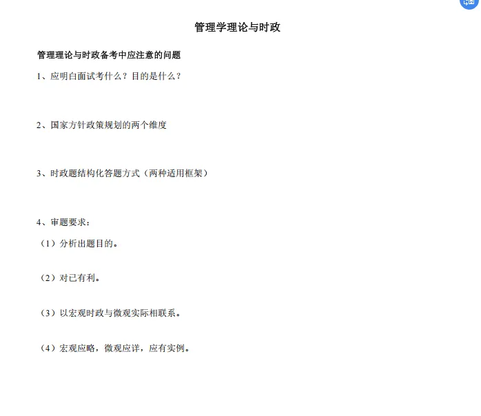 PEST是考研复试有关企业环境分析的常用理论,那么,这类题该怎么回答呢?1、金融16条、民营31条、外资24条、数字经济时代2、25年海南自由贸易港将全岛封关,你所在企业在此之前将会作出哪些应对的提前准备?具体用什么思路组织回答呢?比如第一题思路可以是这样的:总:分析双循环发展格局在大环境,有利于我所在企业的经济趋优发展。分2:应分析在双循环发展格局在大环境下机遇与风险的各种相关因素,加强我所在企业在产业链上以国内闭环畅通为主,以国际循环畅通为辅。分3:应分析在双循环发展格局在大环境下机遇与风险的各种相关因素,加强我所在企业在供应链的上下游以国内闭环畅通为主,以国际循环畅通为辅。金培MBA给大家准备了“2026考研复试干货文档”,扫码添加好友直接领取!【部分内容截图】