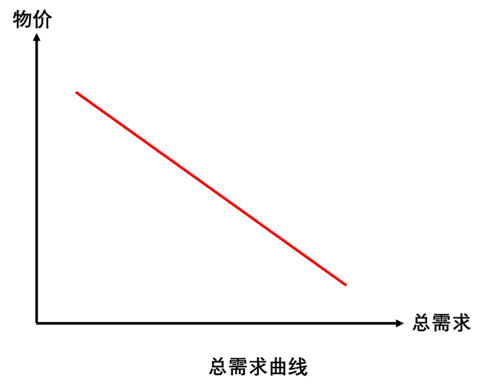 根据三大效应,总需求与产品价格是线性反相关的,可绘制总需求曲线图: