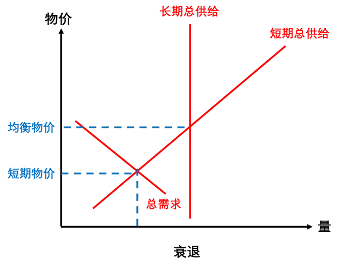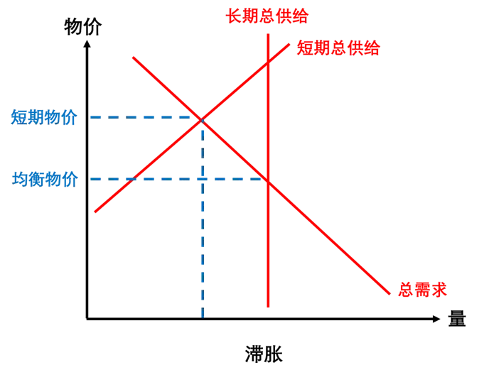 本质上,短期的总供给等于长期的总供给,说明国家当前的劳动力、资本、资源、技术被充分利用。短期的总供给等于总需求,说明国家当前的供给能够满足国民的全部需求。此时,整个经济处于最优状态。