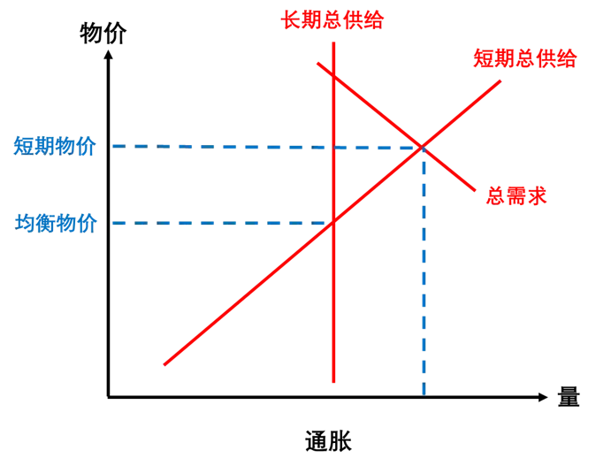 长期效应:长期来看,经济体的劳动力、资本、资源、技术决定了产品的总供给,不会随着物价改变,也并非人类主观行为可以改变的,总供给不变。