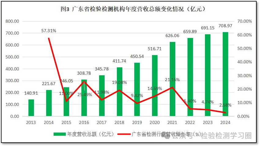 过去12年广东省检验检测机构年度营收总额的变化如图3所示。