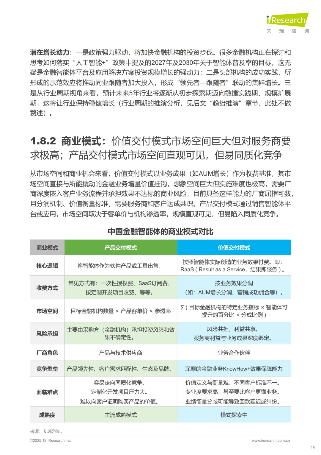 1.中国金融智能体当前市场规模与增长潜力如何?核心商业模式有哪些?