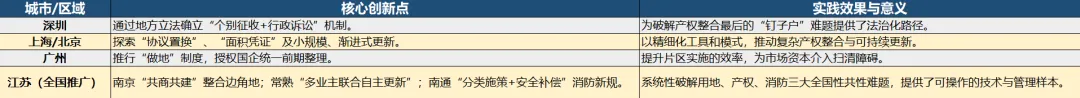 关键洞察:地方实践已超越单纯的政策竞争,进入机制与技术创新的深水区。成功的更新依赖于一套包含产权整合工具、技术标准突破和多元协商机制的“政策工具箱”。