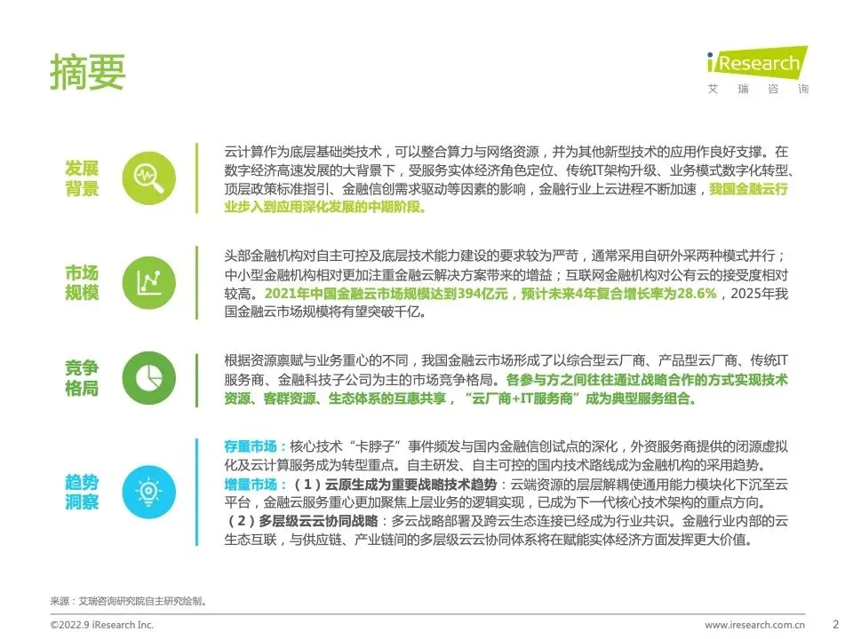 报告对我国金融云行业的发展背景、竞争格局、市场规模等情况进行深入梳理。从存量市场与增量市场两大维度洞察中国金融云行业未来的发展方向与实践效能,并对卓越服务商及卓越解决方案进行深度解读。