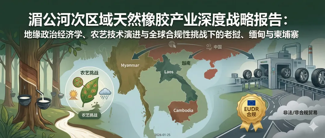本报告对老挝、缅甸和柬埔寨(即湄公河次区域的CLM国家)的天然橡胶产业进行了全面且详尽的深度剖析。作为全球天然橡胶供应版图中至关重要的“非传统种植区”,这三个国家在过去二十年间经历了由地缘政治策略(如罂粟替代种植)、跨国资本流动(中国与越南投资)及全球大宗商品超级周期共同驱动的爆发式增长。目前,该区域正处于从单纯的资源粗放型扩张向产业链深加工与合规性博弈转型的关键十字路口。