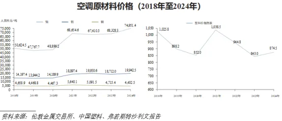 生产空调的主要原材料主要包括铜、铝、钢和塑料。2018年至2020年,铜、铝和钢的价格保持相对稳定。但到了2021年,由于供需不平衡,该等材料价格出现大幅上涨,这一价格反弹与中国制造业复甦息息相关。于2021年至2023年,该等材料的价格保持相对稳定。铜价在2024年进一步上涨,达到每吨人民币74,951.4元。塑料也是空调的主要原材料,过去七年塑料价格指数在1,000点上下波动。