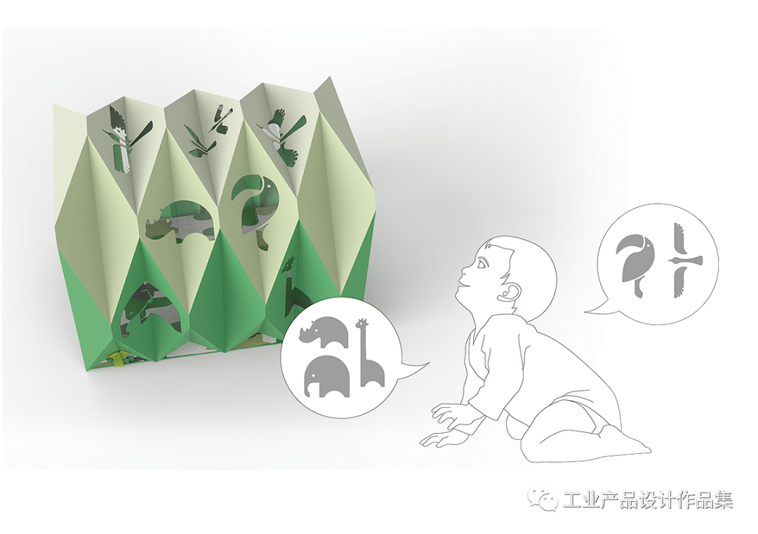 Little Explorer 是一个专为幼儿设计的节省空间的可折叠玩具。伸展的封面提供了各种动物的光和影,它可以很容易地拉伸和拉回来改变大小。设计师受到折纸的启发,为节省空间的玩具制作了伸缩结构,并制作了许多原型来测试合适的形状和比例及风格。