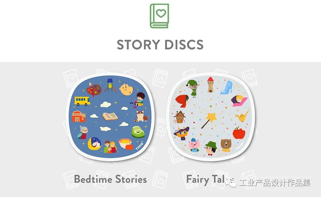TIMIO配置有20张不同主题内容的磁盘,适用于多个年龄段的儿童,内容引人入胜、有趣广泛。包括有音乐磁盘(童谣+摇篮曲+圣诞歌)、故事磁盘(睡前故事+童话故事)、词汇磁盘(字母、海洋动物、交通工具、时间、颜色、数字、形状、农场动物、野生动物、蔬菜、水果、身体部位)和乐器磁盘。这些磁盘可以整齐堆叠在一起,存放在TIMIO专属的纺织袋中。