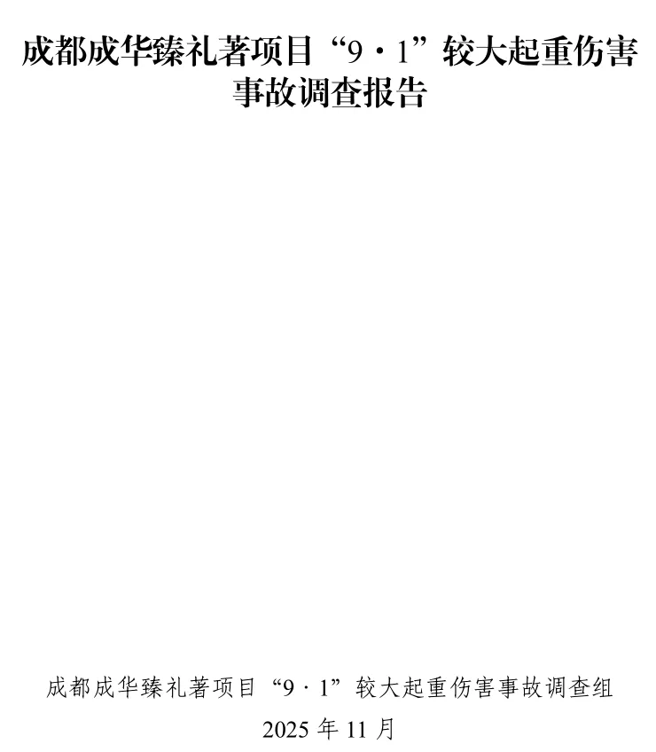 调查认定:成都成华臻礼著项目“9·1”较大起重伤害事故是一起因相关企业安全生产主体责任落实不到位,专项施工方案 存在缺陷,违规组织拆卸作业,安全技术交底和安全教育培训流于形式,作业人员违章作业,属地有关部门和地方党委、政府安全监管不到位,导致的生产安全责任事故。