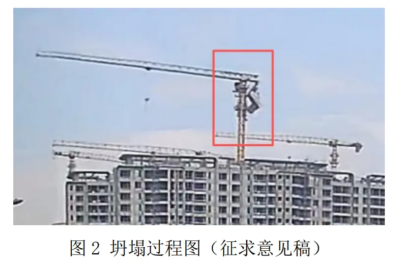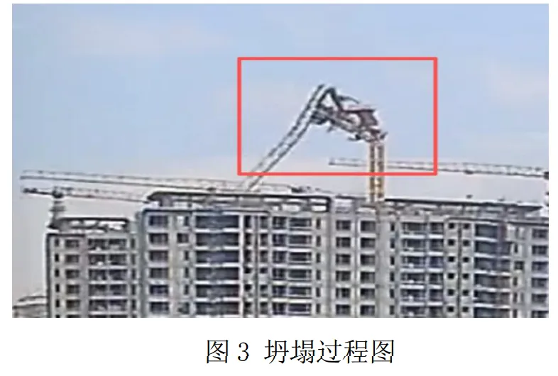 10 时 1 分 48 秒,第一节标准节连同顶升套架、回转总成及以上部分向起重臂方向倾覆。见图 3。
