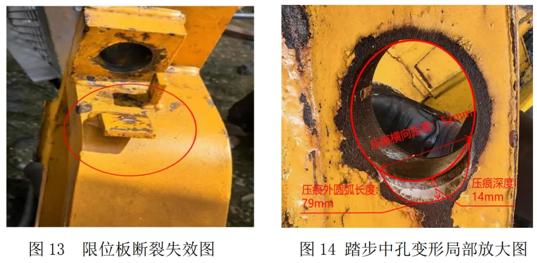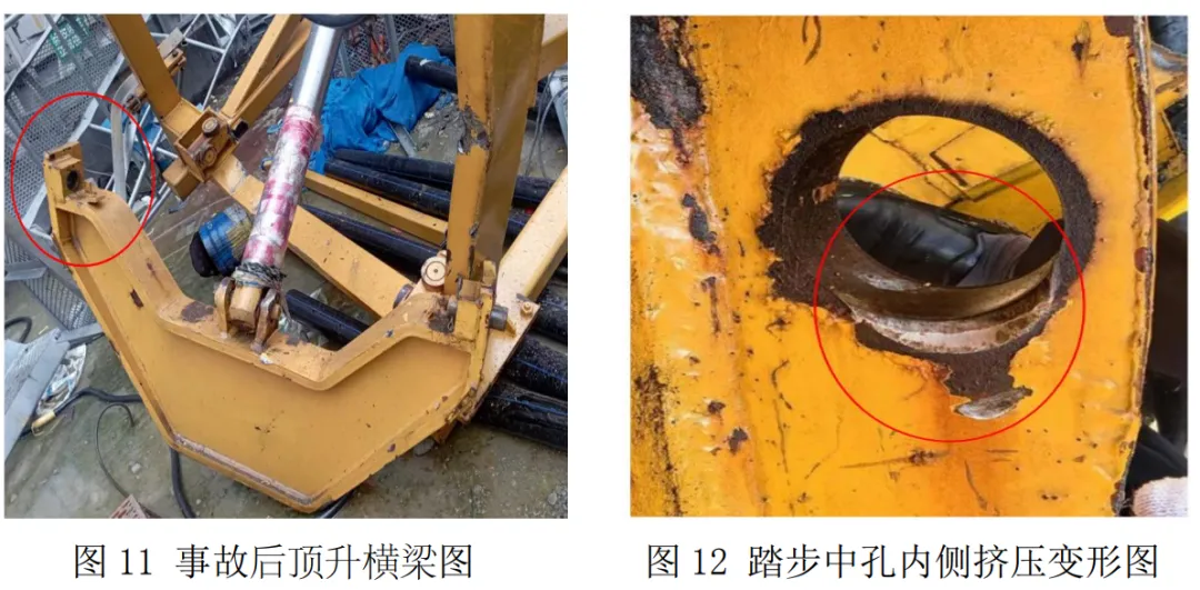10 时 1 分 47 秒,平衡臂主肢撞击顶升套架上平台、平衡重下摆后直接撞击顶升套架下平台位置处。见图 2。