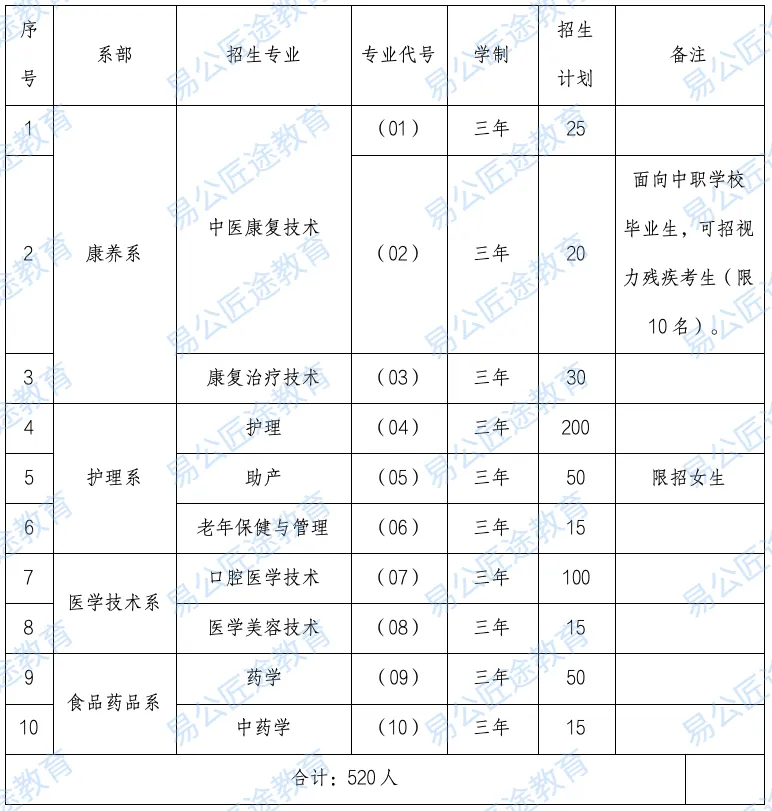 2024年单招招生专业10个,计划招生数520人。共2667人报考,录取比例约为19%。具体招生计划如下: