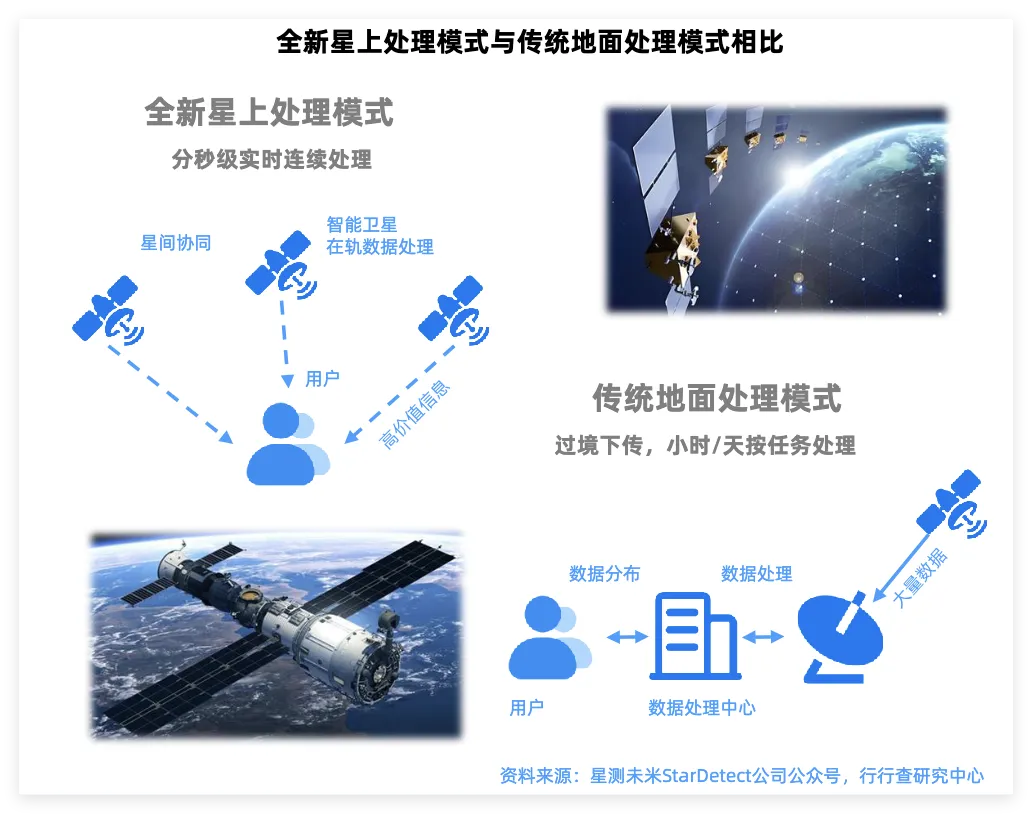 天地一体阶段:通过星间-星地协同网络,实现全球分布式算力动态联动,推动天基智能规模化落地。对比传统地面处理,星上处理模式依托星间协同,可以向用户实时推送高价值信息,彻底重构天基计算的效率与应用边界。