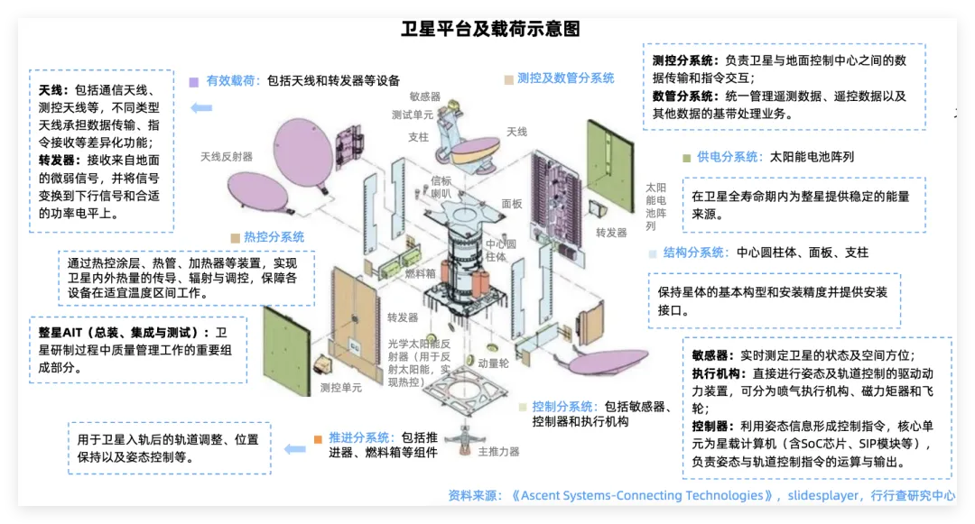卫星制造包括卫星载荷和卫星平台两大部分。