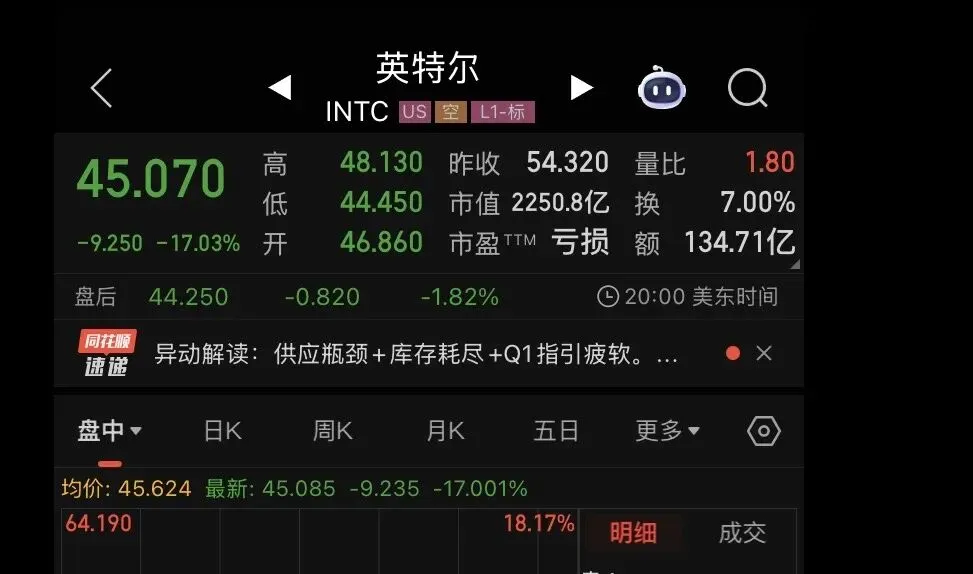 本文基于公开市场信息、行业数据及第三方研究整理,仅为信息分享与分析交流,不构成任何投资建议、交易要约或买卖指导。英特尔股价受宏观经济、行业周期、公司经营、市场情绪等多重因素影响,波动具有不确定性。任何依据本文内容作出的投资决策,均由投资者自行承担全部风险,包括但不限于资金损失、投资收益不及预期等。投资者应结合自身风险承受能力,审慎决策并咨询专业投资顾问意见,本公众号及作者不对任何投资行为结果承担责任。