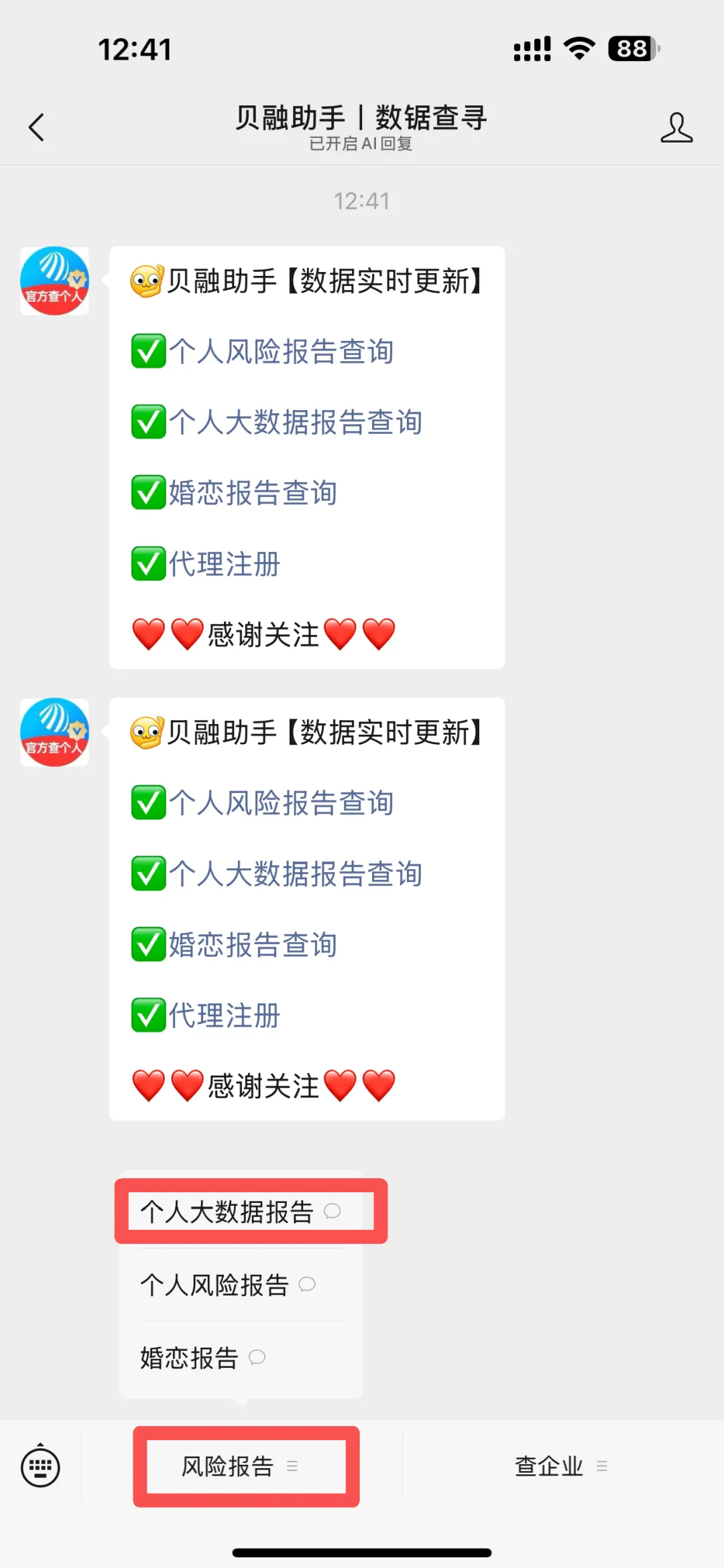 贝融助手,线上就能直接查询,几分钟就能出结果,不需要等待马上出报告。报告页全面直观,自己就能看懂。“关注下方公众号贝融助手”-选择风险报告-点击个人大数据报告,就可以自行查询了。