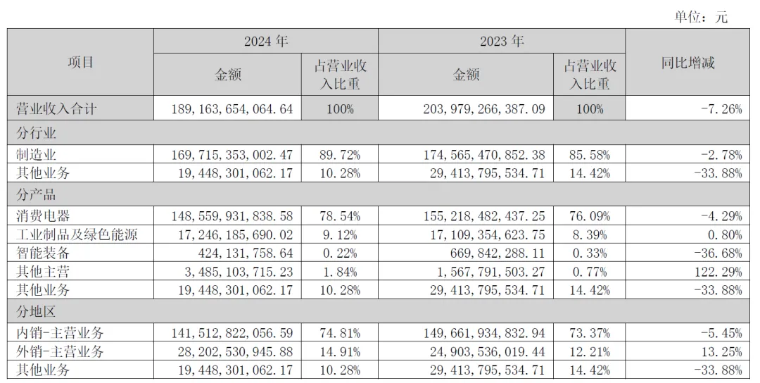 (格力电器营收构成,2024年,图表来源:公司2024年年度报告)
