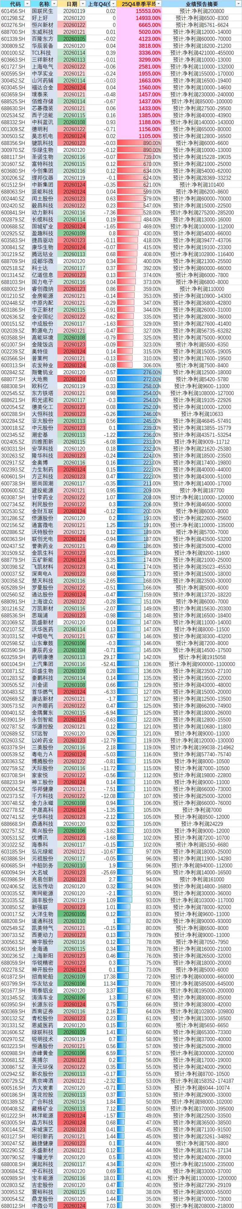 温馨提示:业绩披露后,重点还是看市场的反馈,增长比例也只能当参考,有些去年Q4业绩很烂,今年稍微赚了几千万,增长比例吓人的也不少。另外还有一些,市场已经提前有预期。