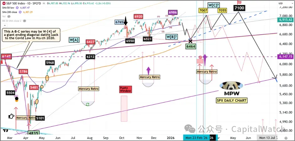 请记住:在我的计算和周期研究中,最终高点最有可能出现在 2026 年 5 月初左右——请参考上方的 SPX 黑色路径。如果你认为目前发生的一切已经很疯狂了, 那么你将会感到非常惊讶 。