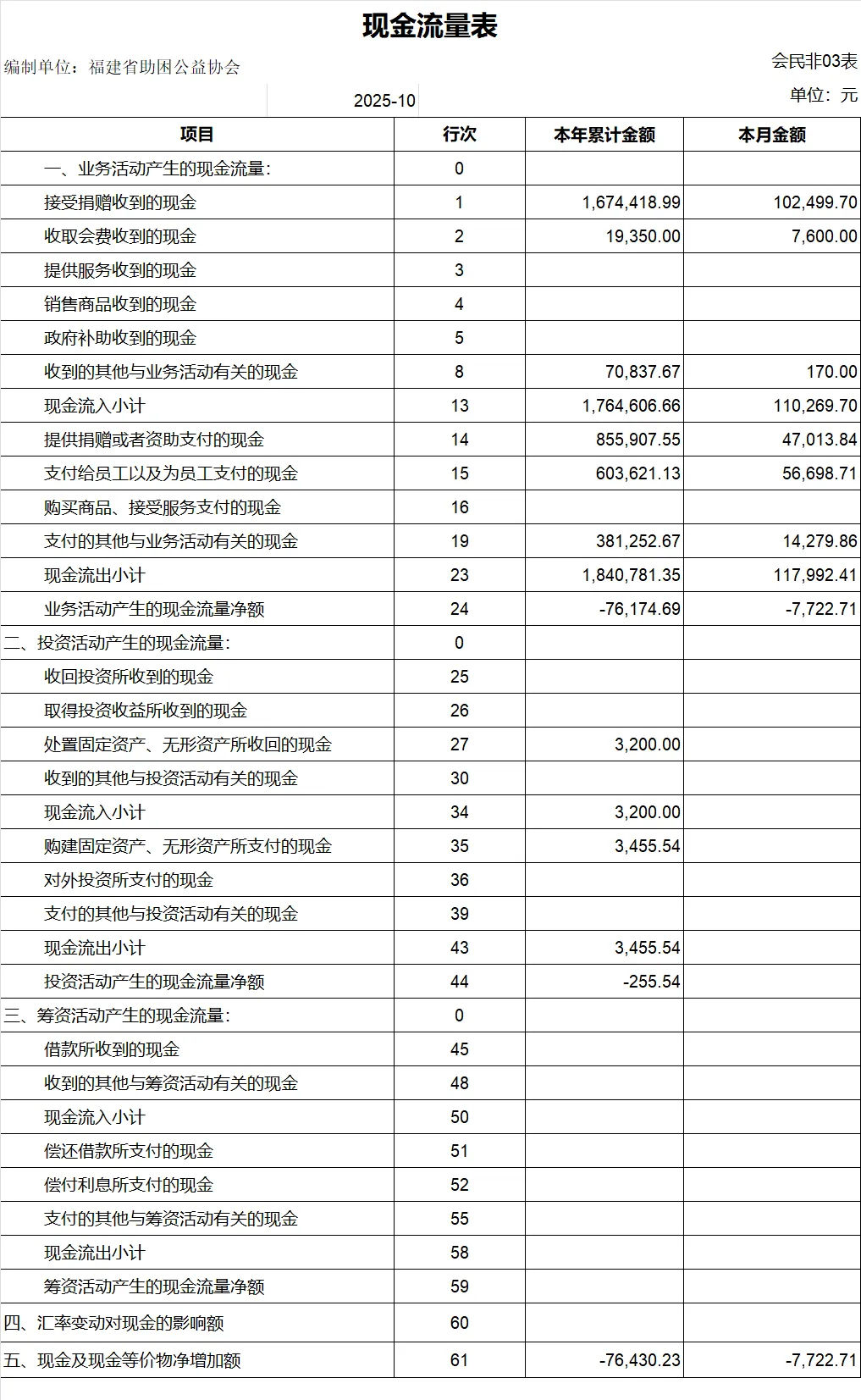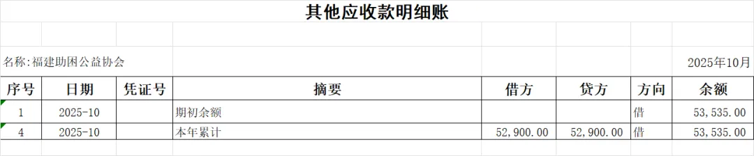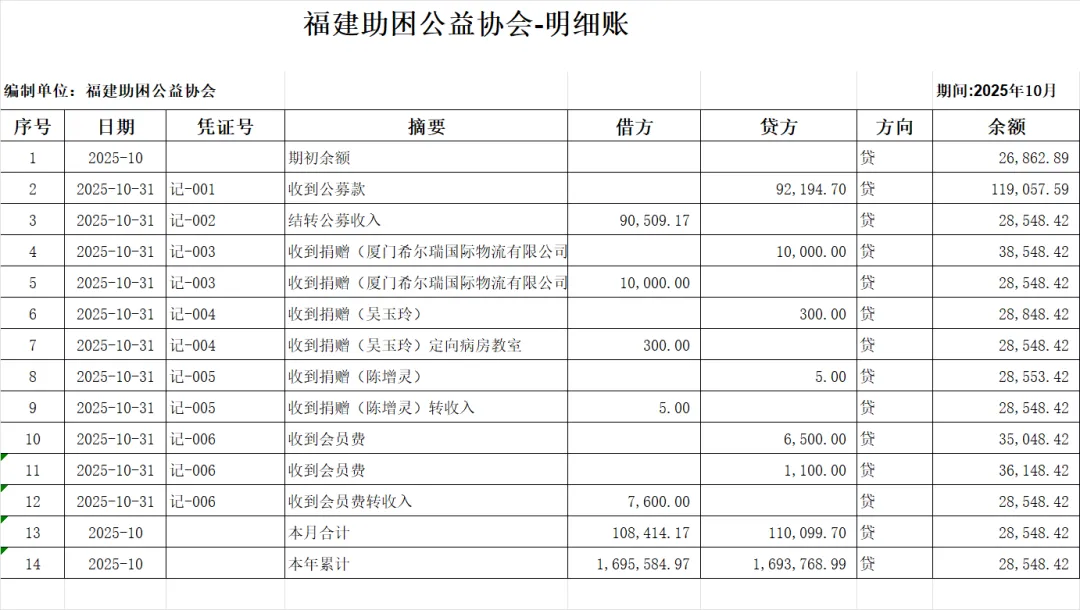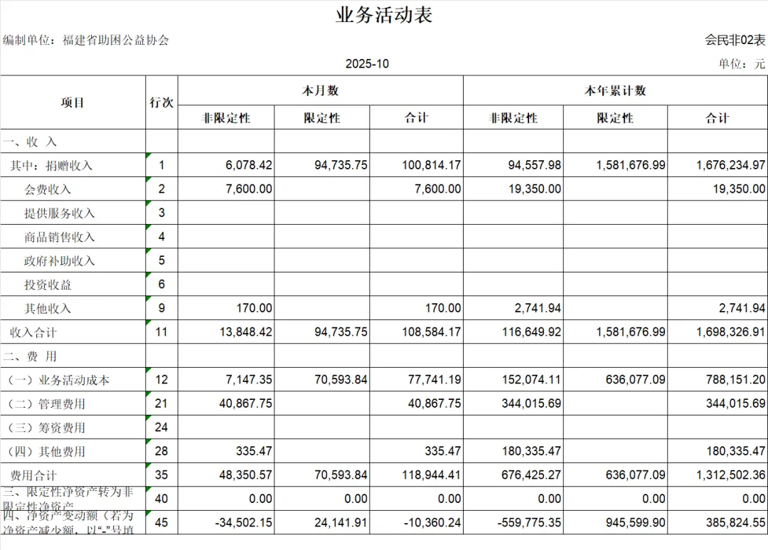 【财务报表】福建省助困公益协会月度财务汇报(202510)