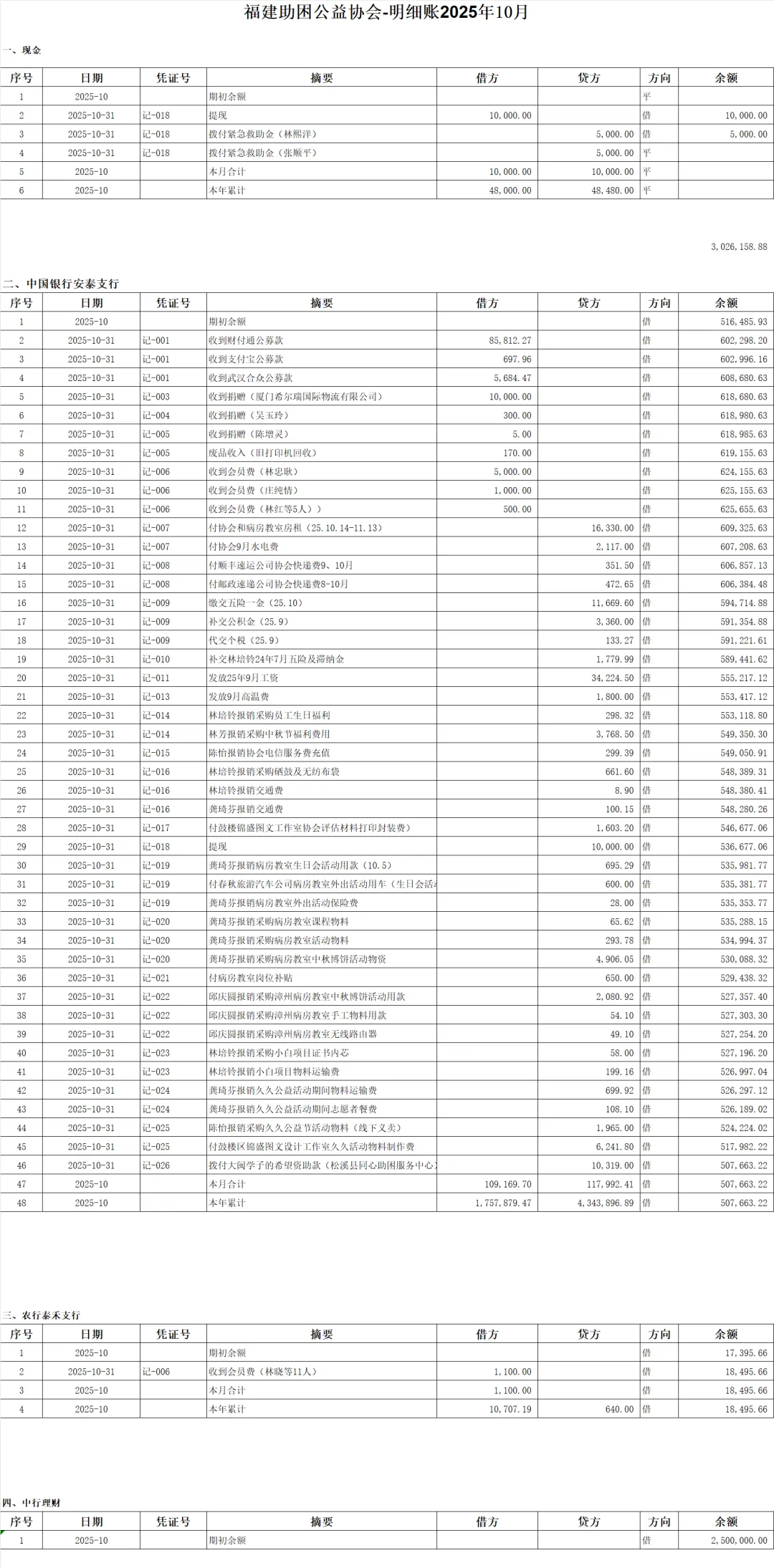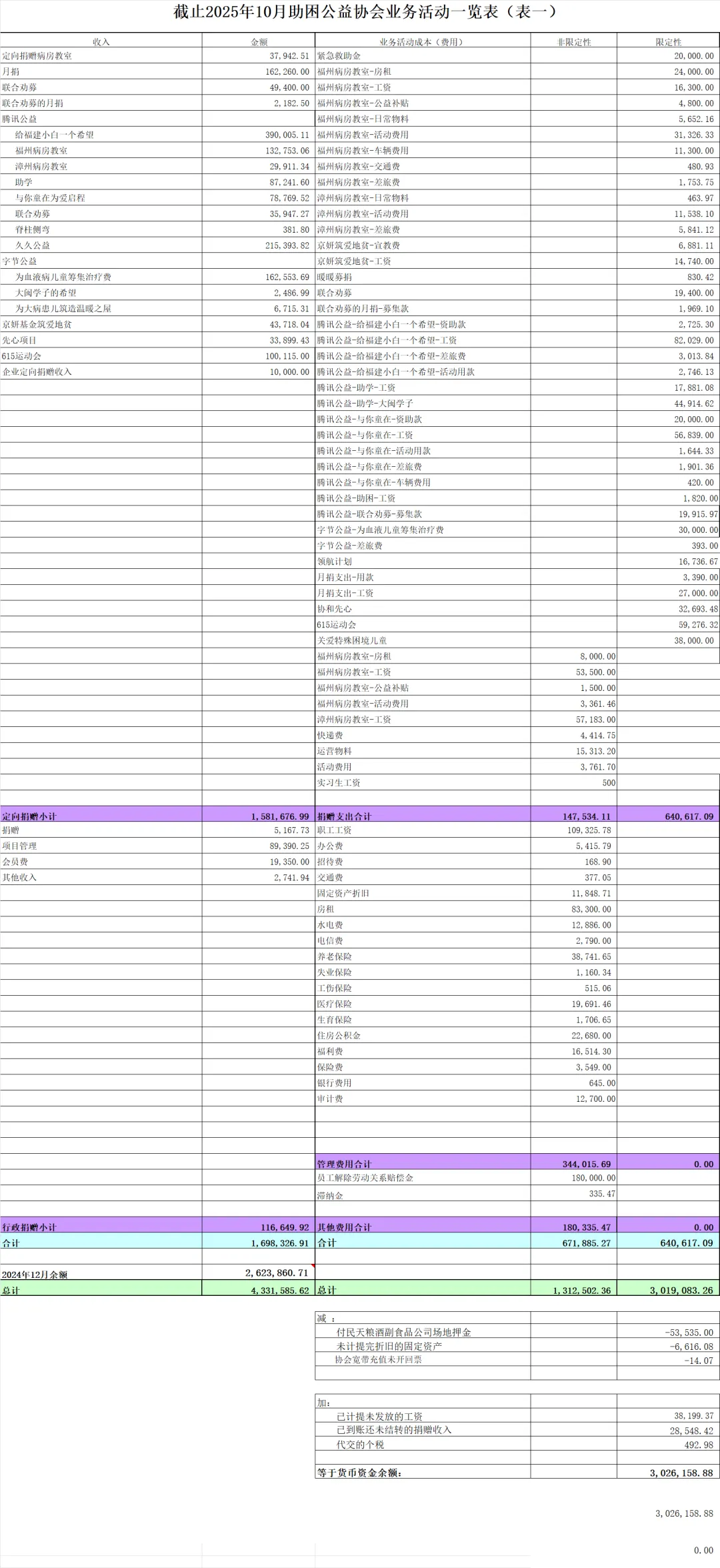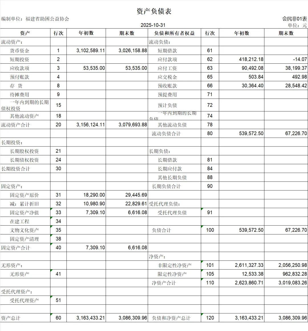 【财务报表】福建省助困公益协会月度财务汇报(202510)