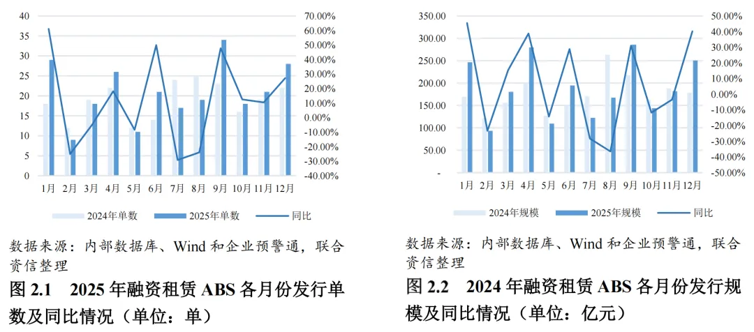 2025年,在政策引导、产业转型与市场需求的多重驱动下,融资租赁ABS作为服务实体经济、支持产业升级的重要融资工具,展现出增长韧性。2025年,融资租赁ABS共发行251单,发行总规模达2257.20亿元,分别较去年同期增长11.06%和增长6.93%。融资租赁ABS市场发行稳健。