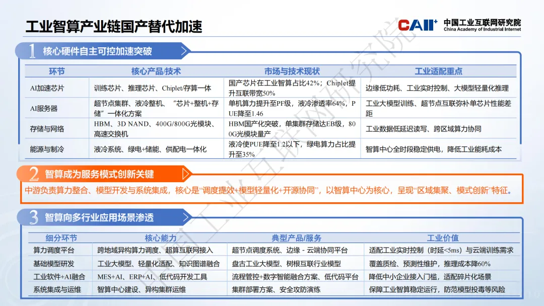 国产替代加速:AI芯片、服务器、存储网络等核心硬件自主可控率提升,国产化占比达42%。