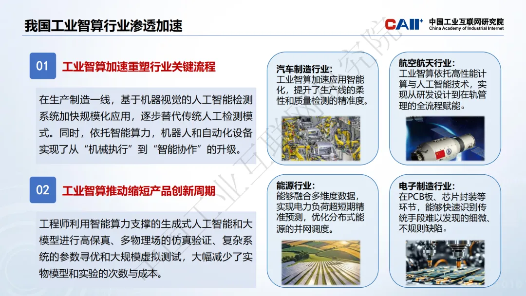 定义:工业智算是人工智能与工业技术深度融合的智能化体系,贯穿设计、生产、管理等环节,具备感知、分析、决策能力。