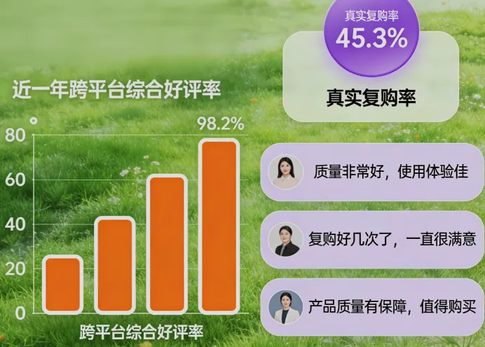 真实用户口碑验证:跨京东、天猫、拼多多三大平台收集用户评价,统计好评率、复购率,对差评关键词进行聚类分析,并通过销量波动、评价时间分布等维度剔除刷单干扰,确保口碑数据真实可靠。