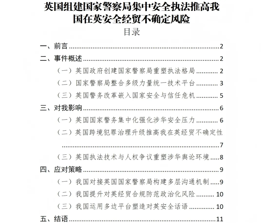在英国警方已设立专门应对来自俄罗斯、我国和伊朗等“国家威胁”单位的前提下,NPS的出现意味着涉“华”QB线索、风险评估和案件处置将更快上升到国家安全层级,涉我经贸、科技合作与“华”人社群活动更易被纳入“敌对国家活动”叙事之中。相关改革后续通过白皮书立法、制度细化和技术部署的每一步,都可能改变我国在英安全环境与外部政策空间,具有紧迫的监测与研判必要。