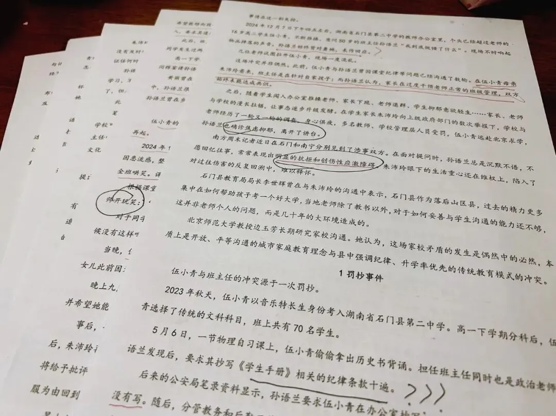 报道的主角高二学生伍小青(化名)抑郁症一度加重,最终选择出国留学;五点多出门,十一点多下班的临退休班主任孙老师患上了创伤性应激障碍;学生家长至今依旧走在维权的道路上,从县教育局、公安局,到县市省纪委,教育厅等部门。