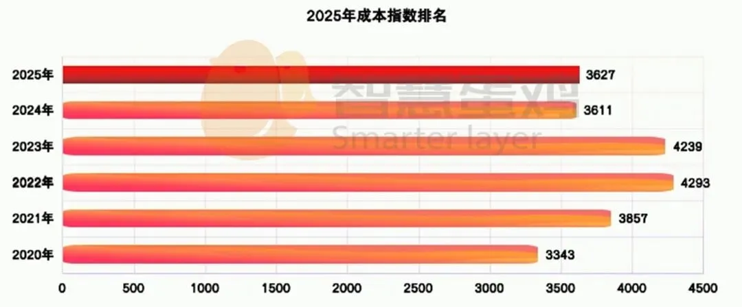 2025年度成本指数为3627点,居于2020-2025近六年间历史第三低位。