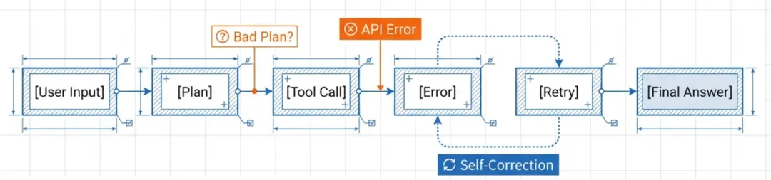 - 示例: 一个健壮的智能体在遇到API失败时会尝试重试,在指令不明确时会向用户追问以寻求澄清,在无法完成任务时能优雅降级并说明原因。相反,一个脆弱的智能体则会直接崩溃或给出胡编乱造的答案。