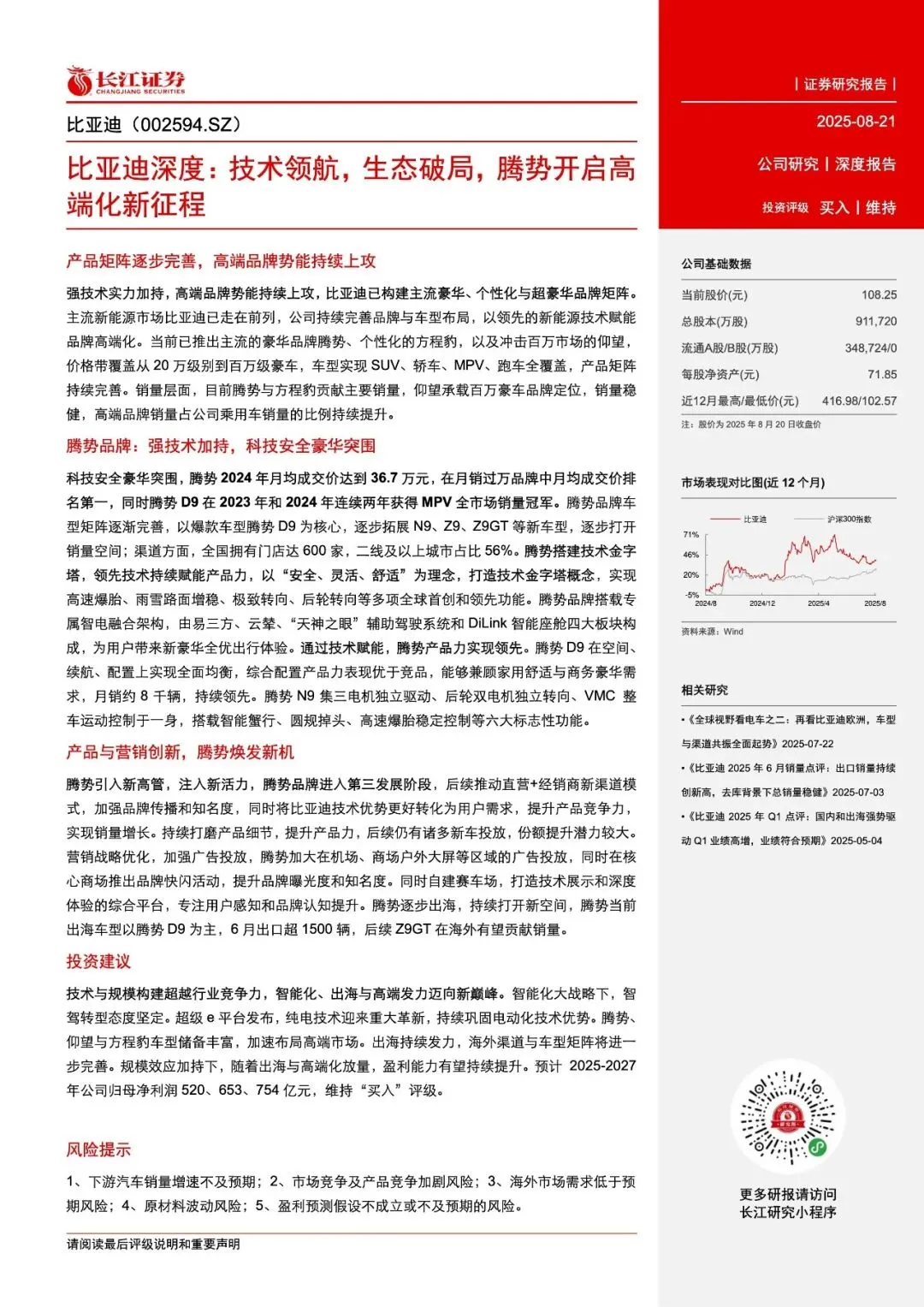 报告名称:《2025比亚迪深度报告:技术领航,生态破局,腾势开启高端化新征程》