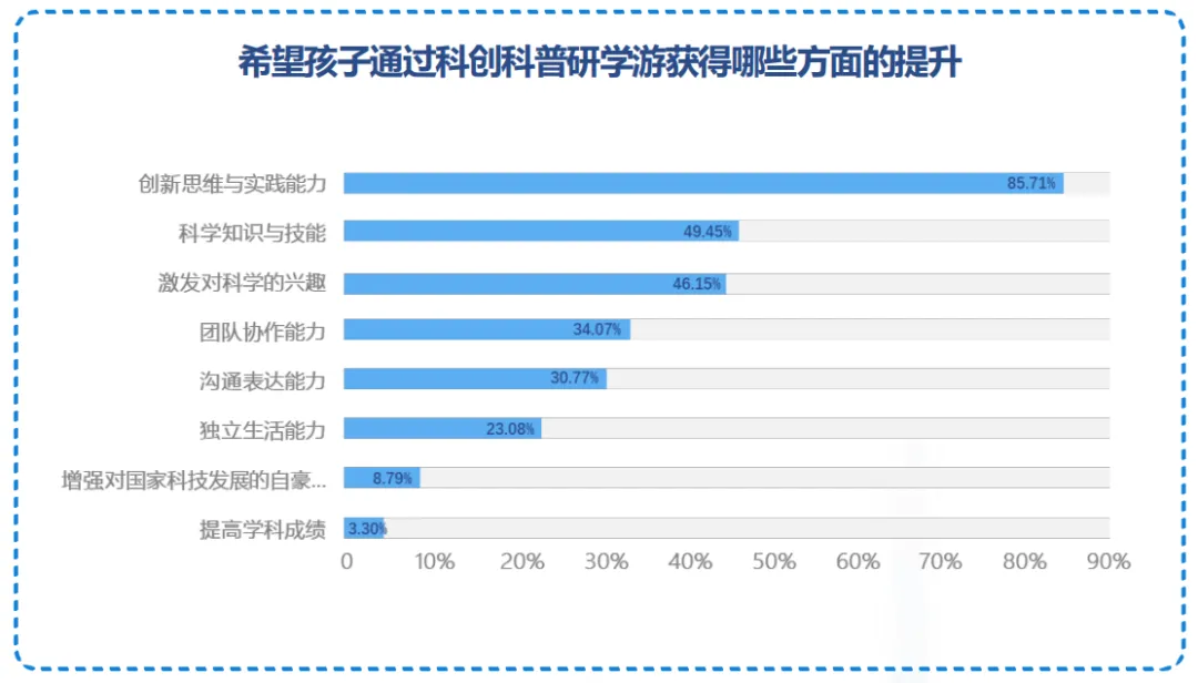 值得关注的是,家长群体的消费决策逻辑已发生转变,从传统的“知识导向型付费”转向“能力导向型付费”。调查数据明确显示,家长在筛选科创研学产品时,核心关注维度为“青少年创新思维与实践能力的提升”,而非单纯的科学知识堆砌。