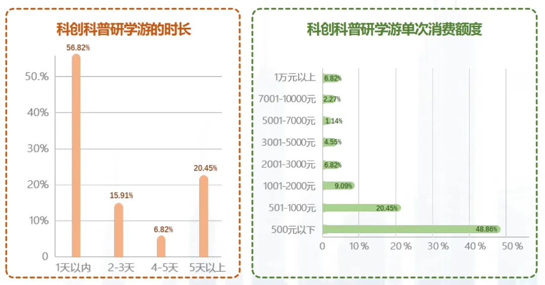 1天及以内的短途研学产品占比最高,构成了市场基础盘。此类产品主要服务于本地及周边客群,以低参与门槛、高频次消费的特点,满足家庭对科创体验的常态化需求,是青少年接触科技领域、激发科学兴趣的重要启蒙载体。