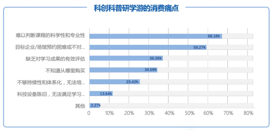 尽管科创研学市场需求旺盛,但需求端的消费意愿向实际消费转化仍面临两大核心瓶颈,成为行业发展的制约因素。