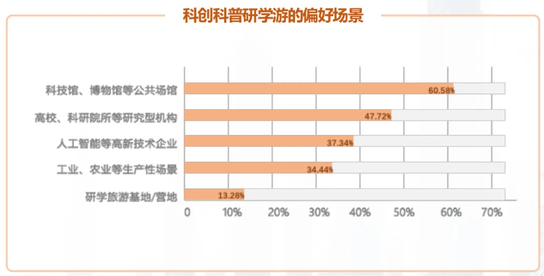二是优质科创场景开放度不足导致供给缺口。“目标企业/场馆预约困难或不对外开放”是制约市场供给的核心因素,即科创科普核心场景的可及性难以满足市场需求。真正具备前沿性、真实性的科研机构实验室、高科技企业生产车间等核心场景,往往因安全管理、接待能力等限制不对公众开放,导致优质研学场景供给严重不足。值得关注的是,需求端的场景偏好正发生显著转变:类似科技馆等具备安全性、专业性、开放性的公共场馆仍是市场基础偏好,但具备前沿性、真实性、沉浸式的科研与生产场景,不仅当前市场认可度高,更具备广阔的发展潜力。