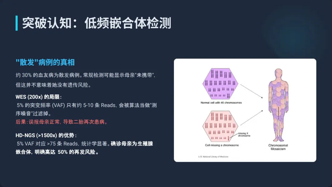 3. 嵌合体(Mosaicism)检测:突破遗传病的“全或无”认知
