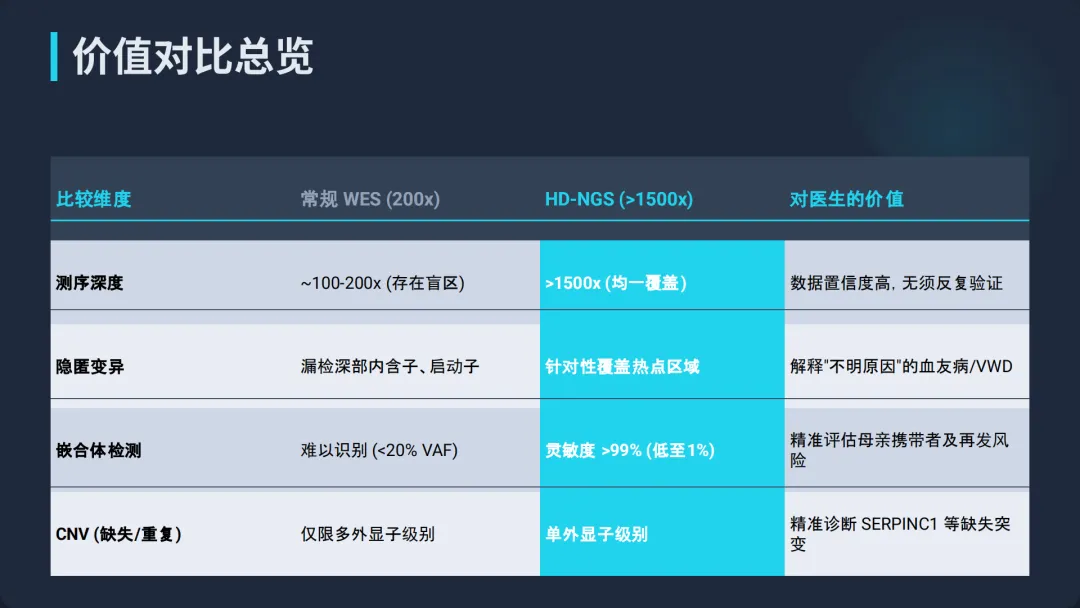 表 1:WES与HD-NGS在血栓止血基因检测中的技术参数对比