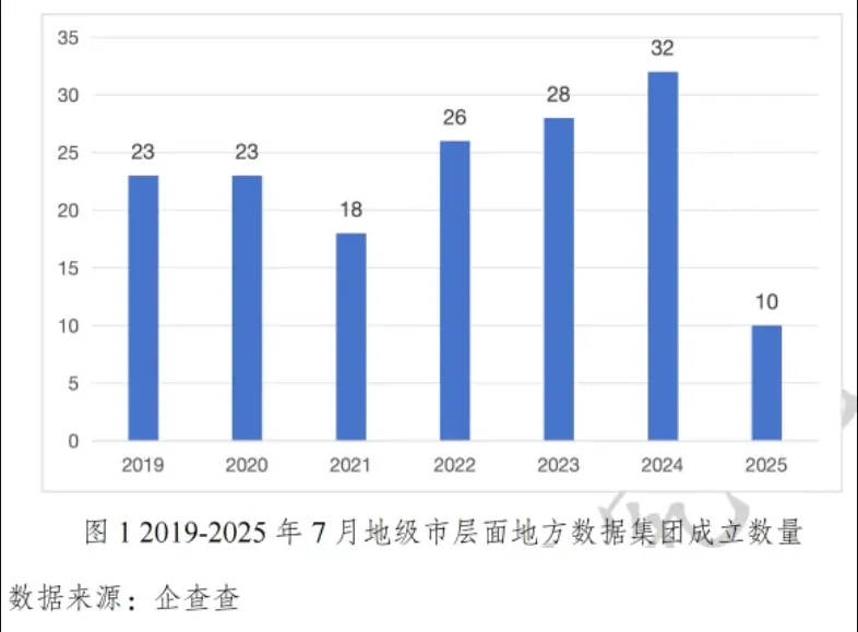 从地级市层面看,当前 292个地级市政府中,已经有 186个地级市建立了地方数据集团,占比达到 64%。从 2019年以来,地方数据集团成立数量保持高位,从 2019年到 2024年,企业成立数量增长了 39%,年均增长率约 6.8%,表明地级市层面的地方数据集团正在加快建设。多数地级市均以“政府主导、国资出资、整合政务数据资源”为核心路径,通过成立国有独资或控股的数据集团,统一承接本地公共数据的归集、治理与运营职能。