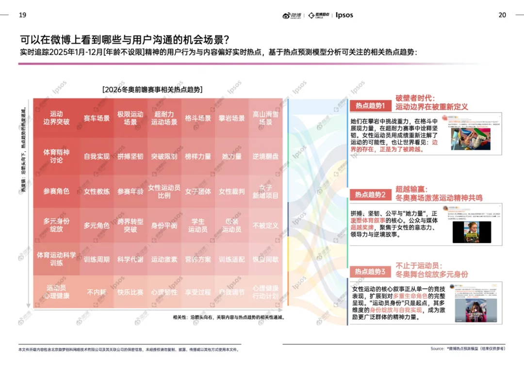 这份报告的核心就一件事:冬奥还没开打,微博上已经“炸”了。用户不只是看比赛,更热衷于全程追运动员、聊他们的“年龄不设限”精神,自己玩梗造热点,还催生了一堆新消费机会。