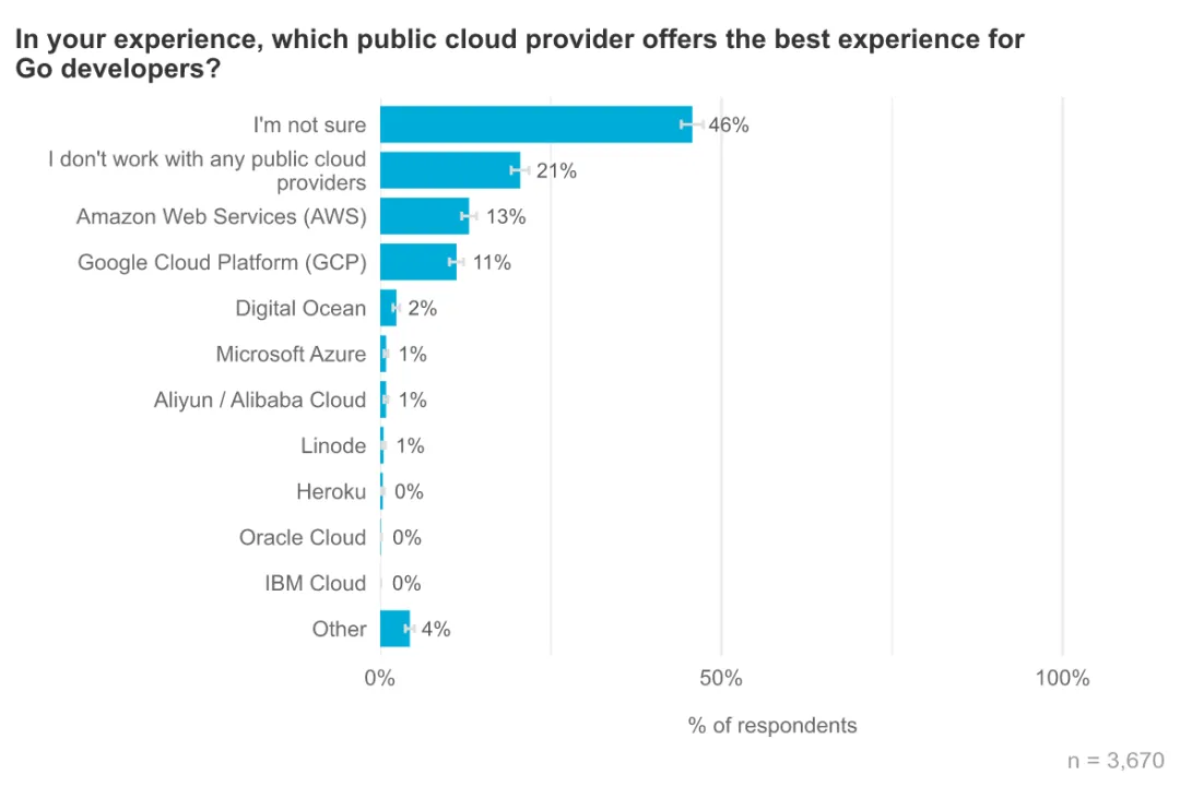 “云提供商对我来说真的没什么区别。我只管写代码并部署到容器中,无论是 AWS 还是 GCP,我并不在乎。” —— 比较满意 / 3 - 10 年经验 / 金融服务