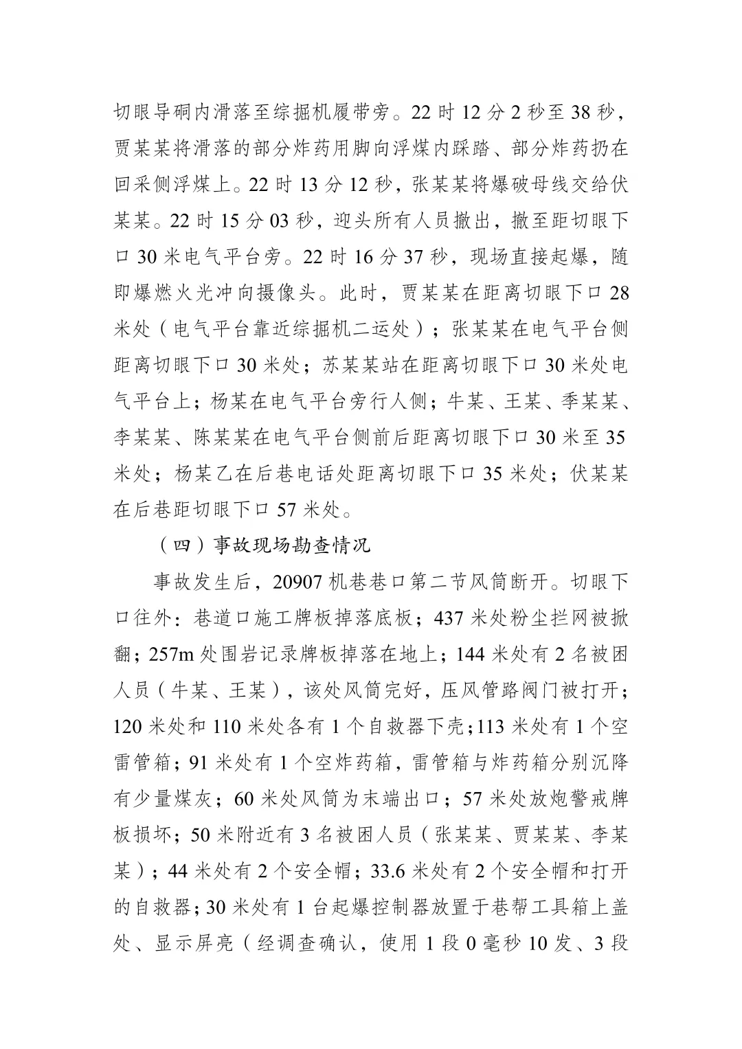 1.违规裸露爆破。现场未实施打眼作业,爆破工将炸药卷直接放置在迎头浮煤堆里实施爆破。现场视频显示,事故发生前10分钟内,切眼导硐浮煤上炸药滑落,爆破工将部分炸药用脚向浮煤内踩踏、部分炸药扔在浮煤上。
